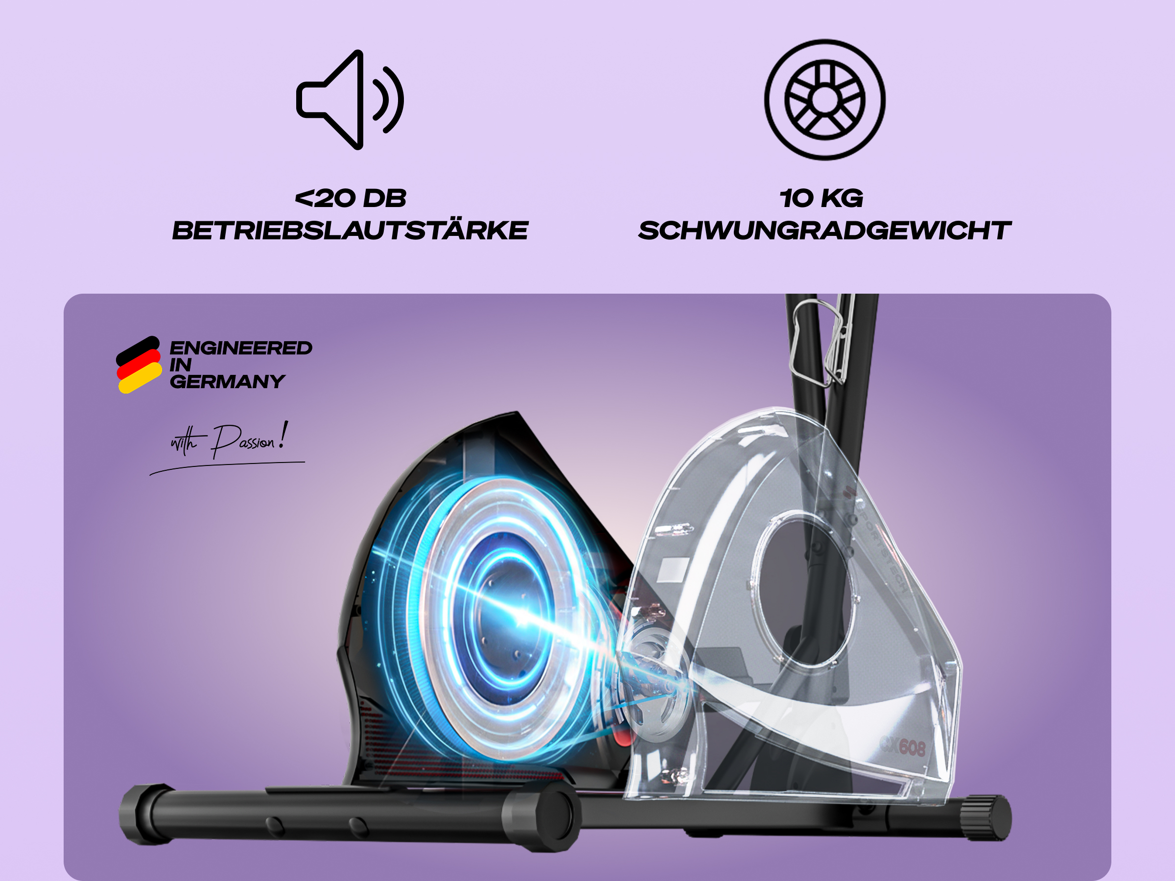Der CX608 verfügt über acht individuell einstellbare Widerstandsstufen, die es Ihnen ermöglichen, Ihr Training optimal an Ihr persönliches Fitnesslevel anzupassen. Die Stufen eins bis drei eignen sich besonders für ein leichtes Workout, das in seiner Intensität einem entspannten Yoga-Training entspricht. Im mittleren Bereich, also den Stufen vier bis sechs, trainieren Sie auf einem Niveau, das einem zügigen Lauf gleichkommt und Ihre Ausdauer gezielt fördert. Die höchsten Stufen sieben und acht bieten schließlich eine intensive Belastung, die mit der Anstrengung einer Schwimmeinheit vergleichbar ist – perfekt für alle, die ihre Leistungsgrenzen austesten möchten.