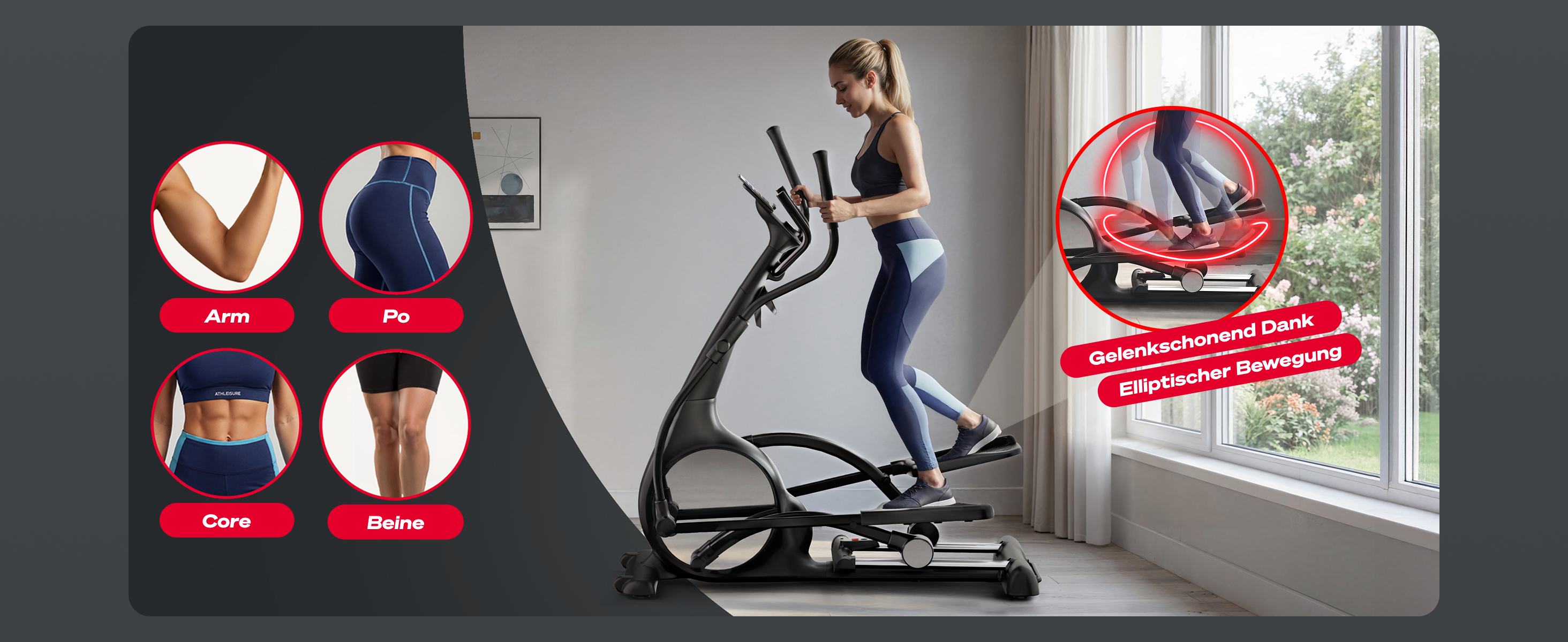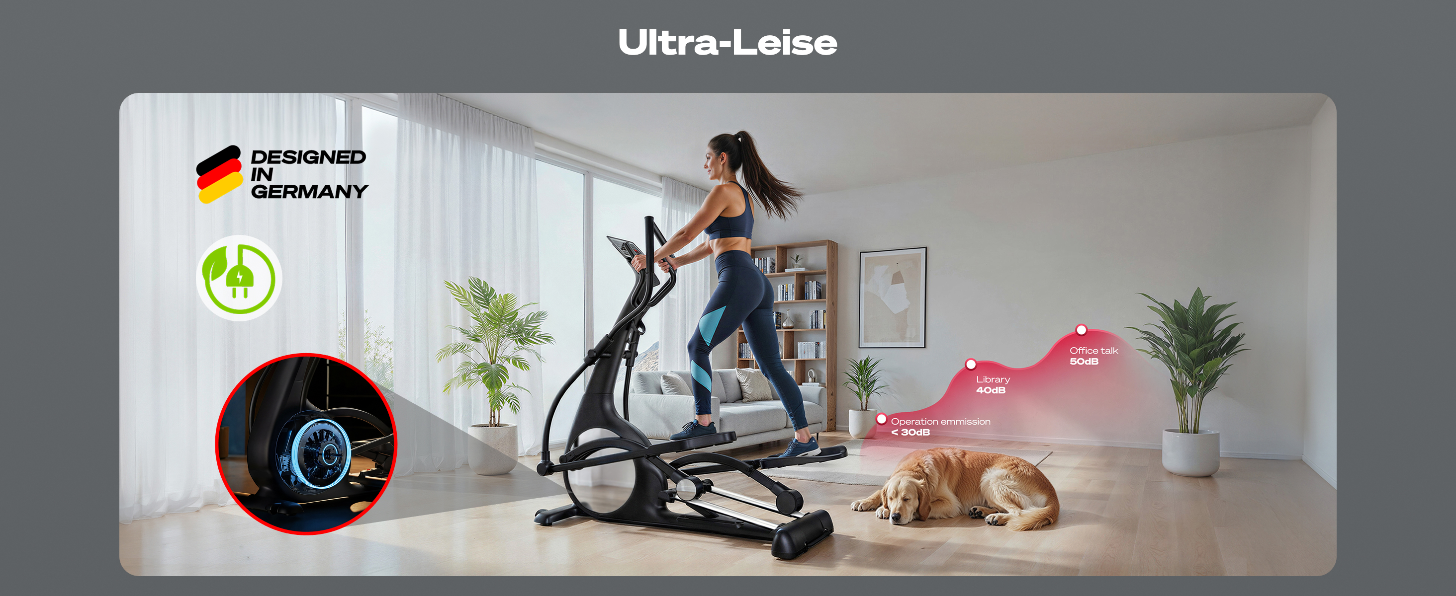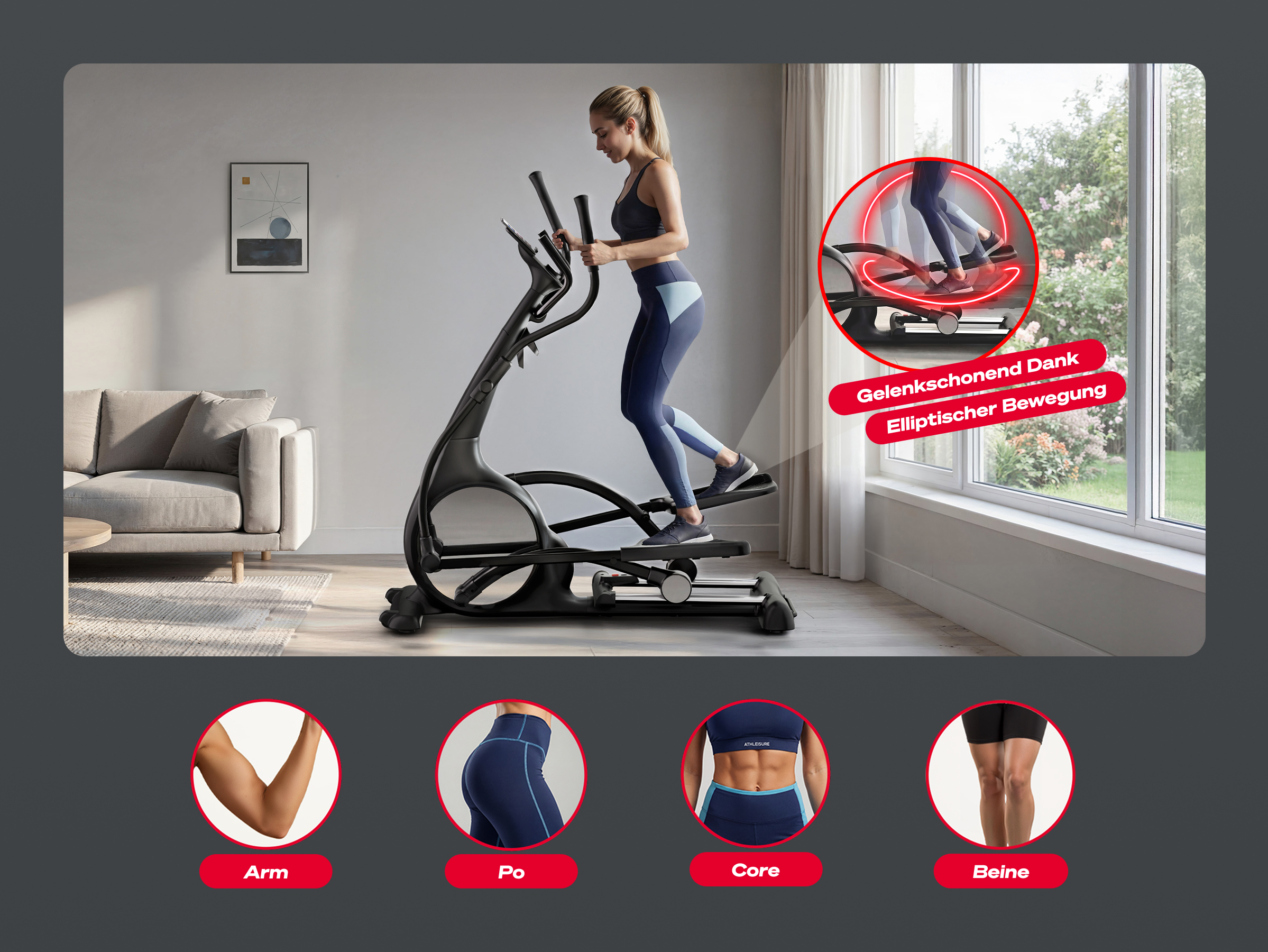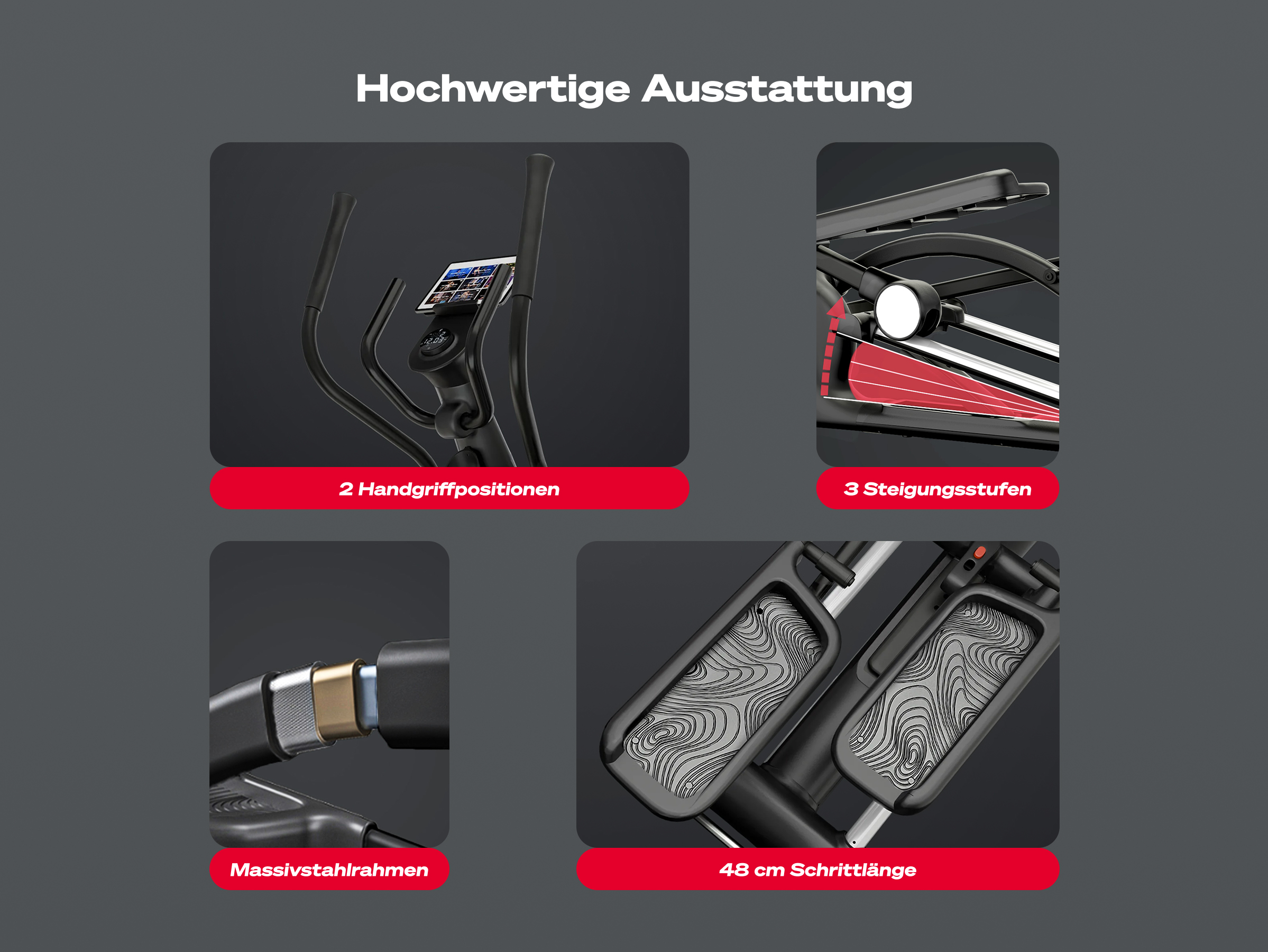 Der sCross verfügt über 32 elektronisch gesteuerte Widerstandsstufen. So lässt sich das Training perfekt an jedes Fitnesslevel anpassen – vom Aufwärmen bis hin zu intensiven Intervallen. Unterstützt wird das Training durch eine 6 kg Schwungradgewicht, die für einen gleichmäßigen und gelenkschonenden Bewegungsablauf sorgt.