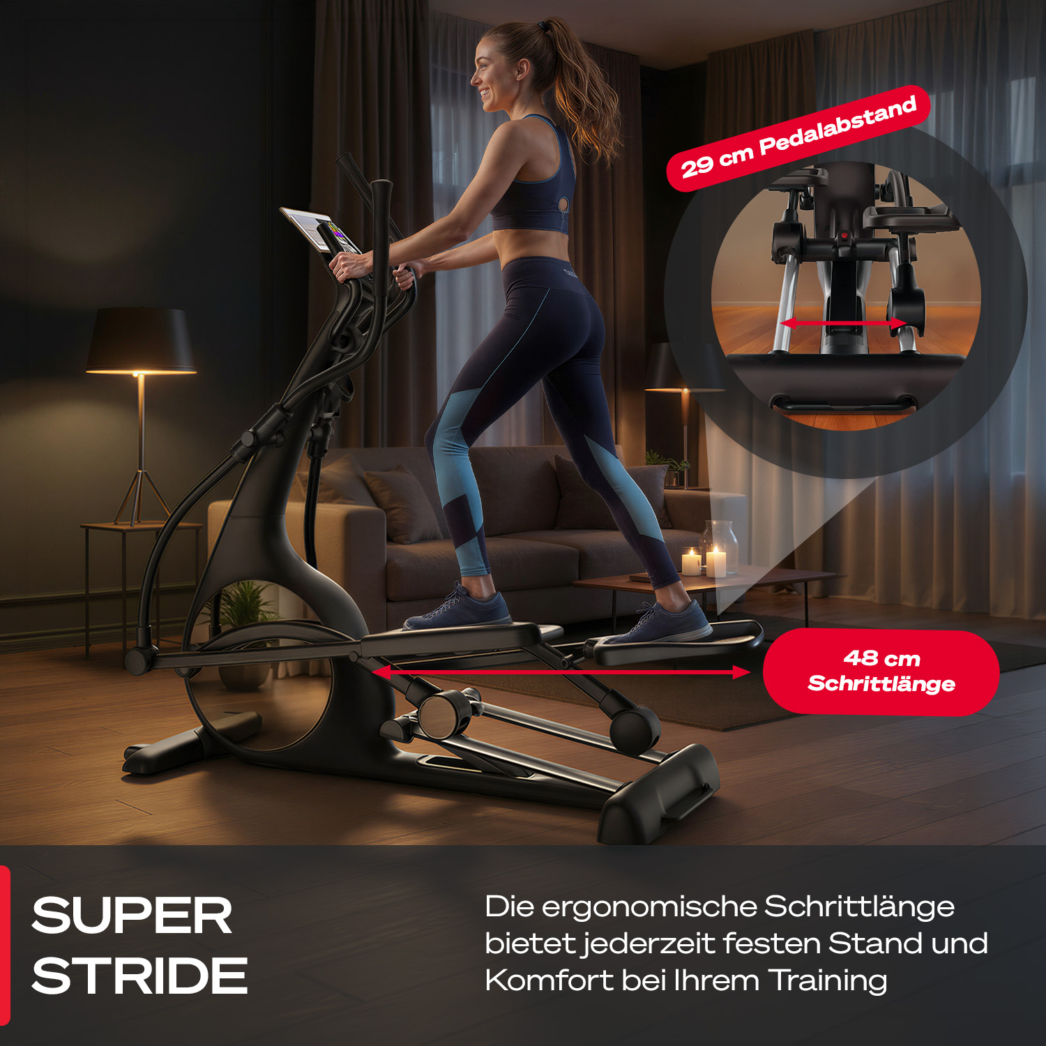 Welche Schrittlänge bietet der Sportstech sCross Ellipsentrainer?