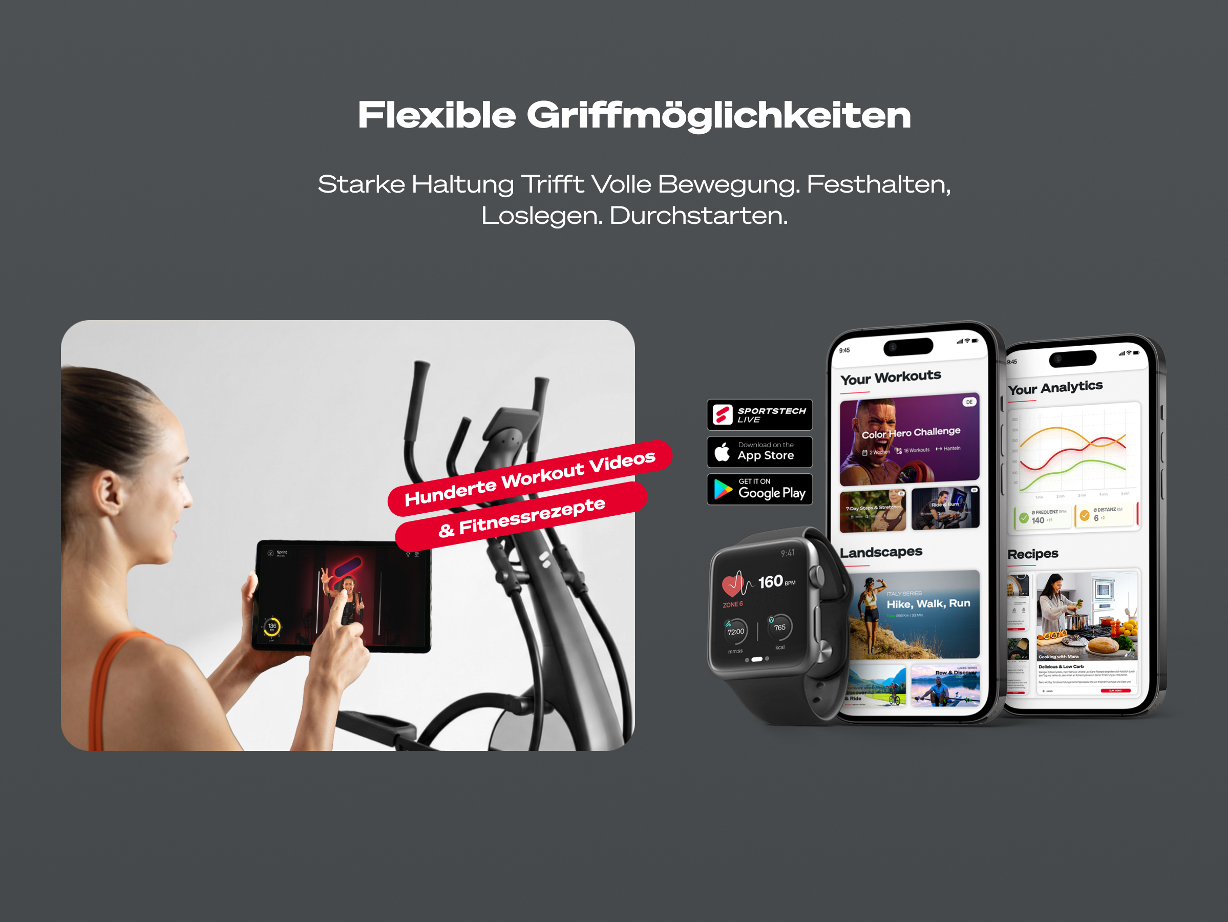 Ja, der sCross lässt sich über Bluetooth mit der Sportstech Live App verbinden. Die App bietet Trainingsvideos, Workouts, Rezeptideen, Challenges, eine Community und mehr für maximale Motivation und Fortschrittskontrolle.