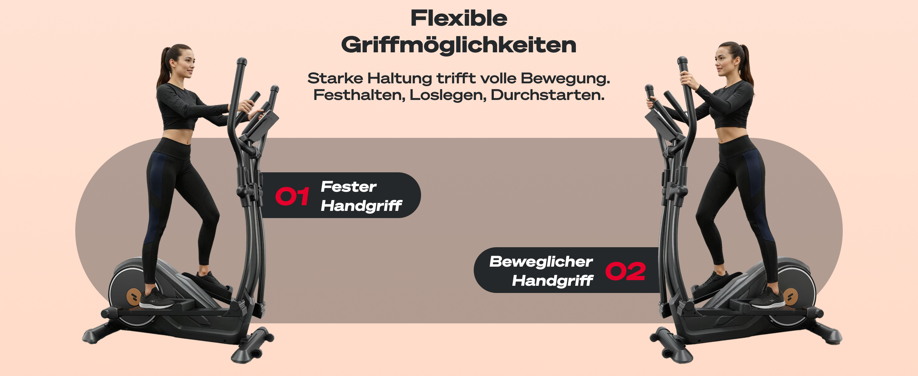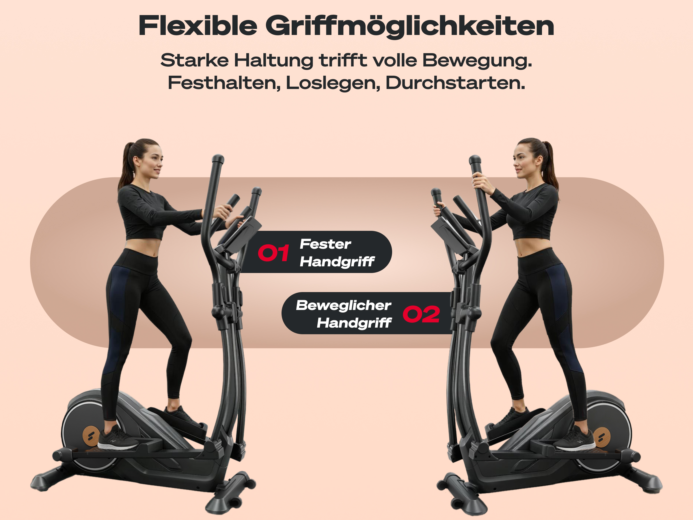 Der Crosstrainer ist mit integrierten Handpulssensoren ausgestattet, die die Herzfrequenz während des Trainings erfassen. Zusätzlich kann ein Bluetooth-Brustgurt verwendet werden, um die Herzfrequenz noch präziser zu überwachen.