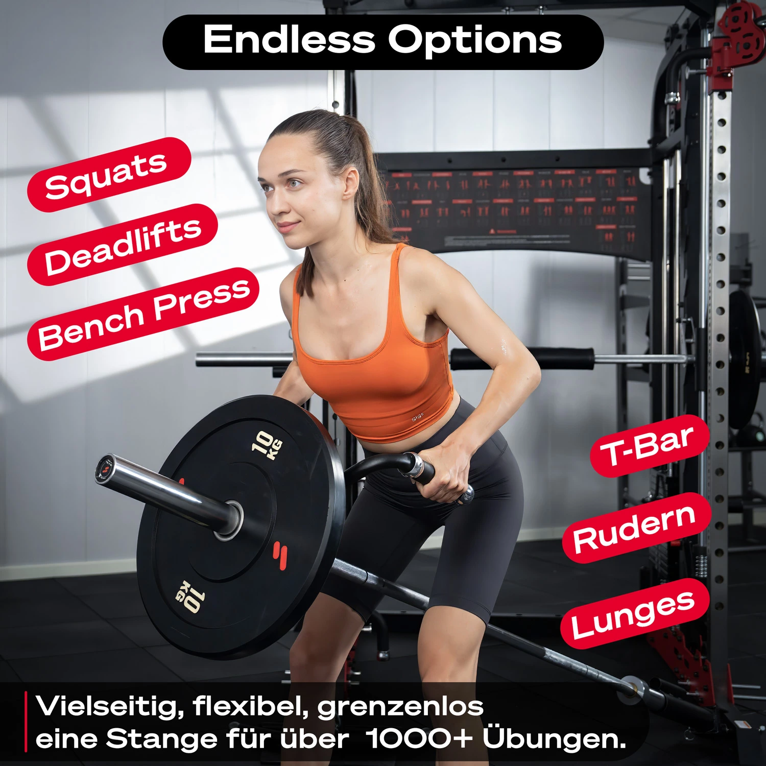 Vielseitiges Ganzkörpertraining: Squats, Langhantelrudern, Bizepscurls, Bankdrücken, T-Bar Rudern und viele weitere Übungen