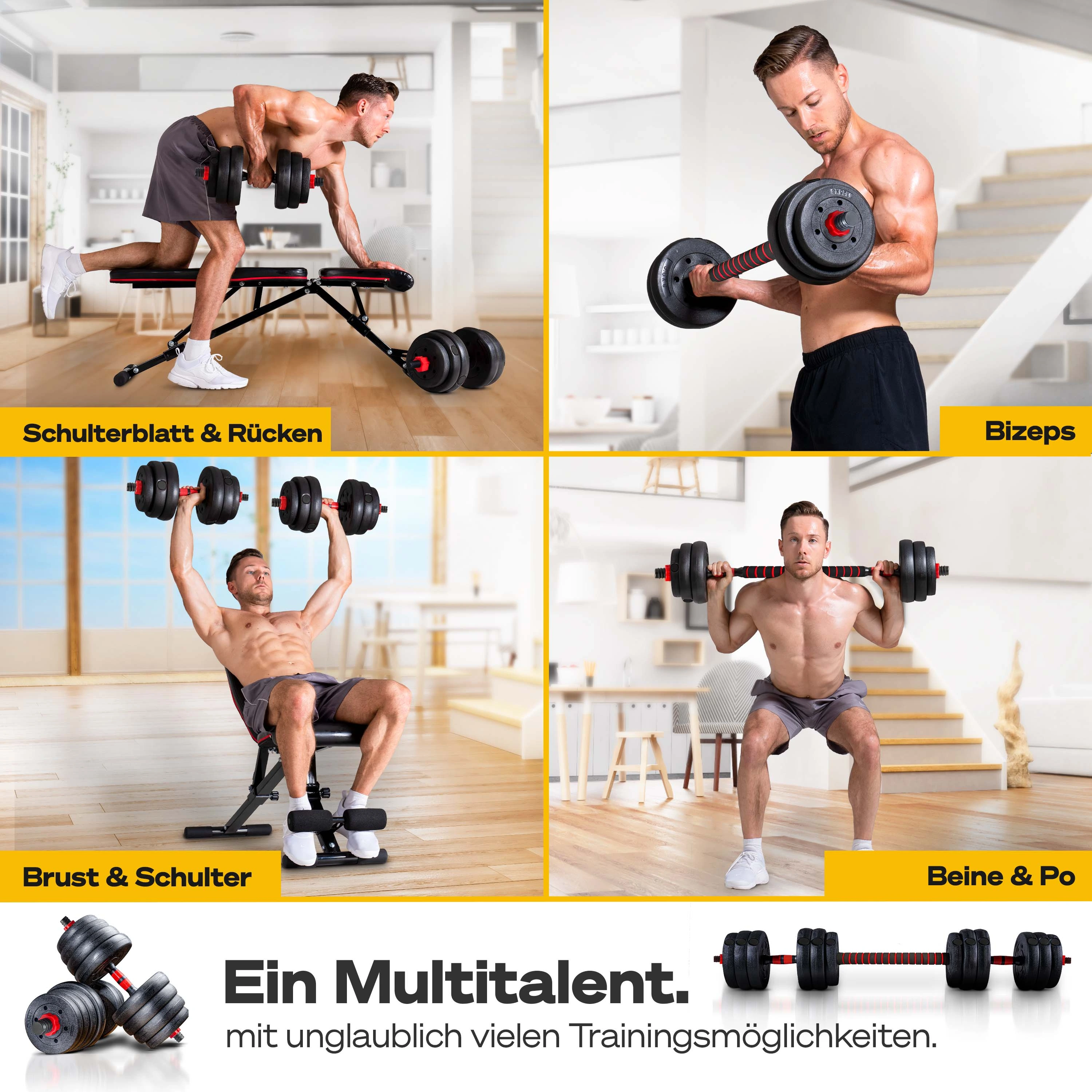Hantel-Set AH150 40kg 2in1 Kurzhanteln & Langhantel ✓ Fitness für Männer & Frauen ✓ Sicherheitsverschluss ✓ Hier kaufen!