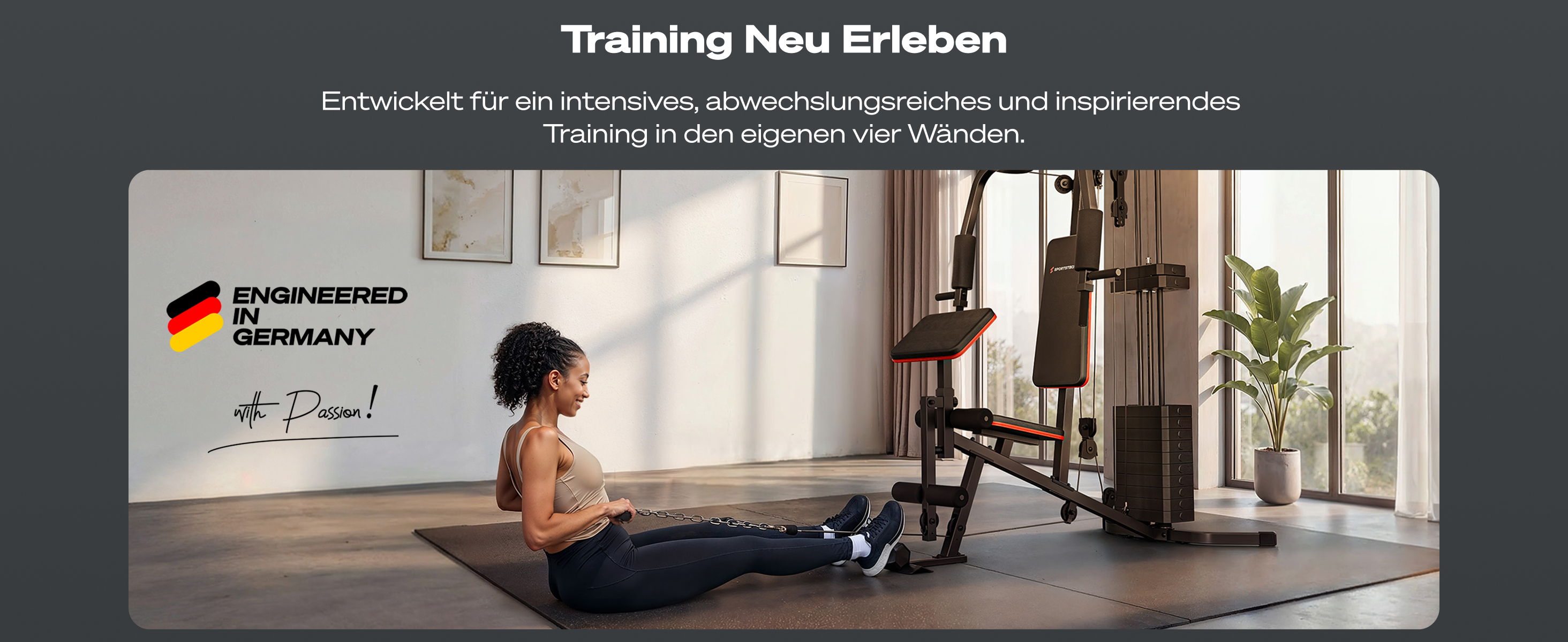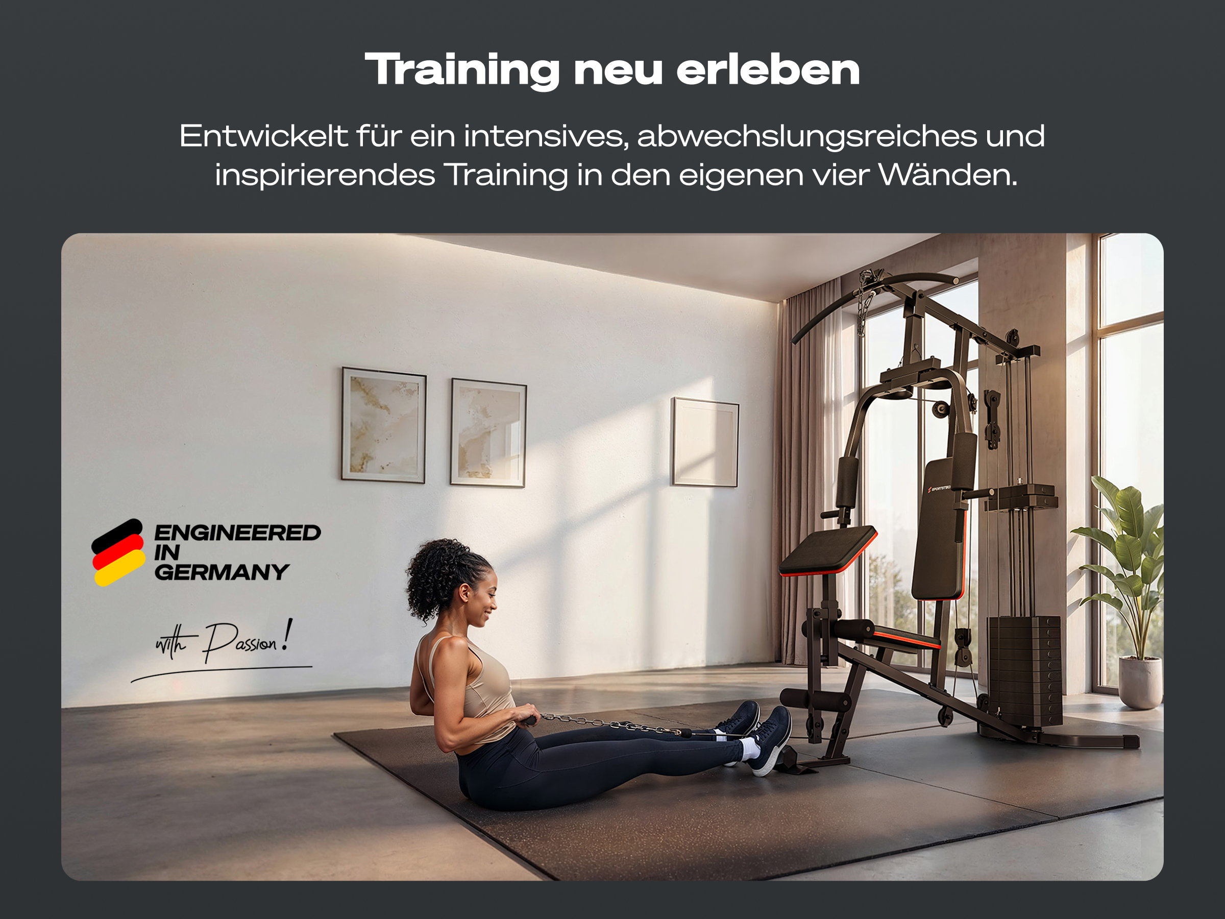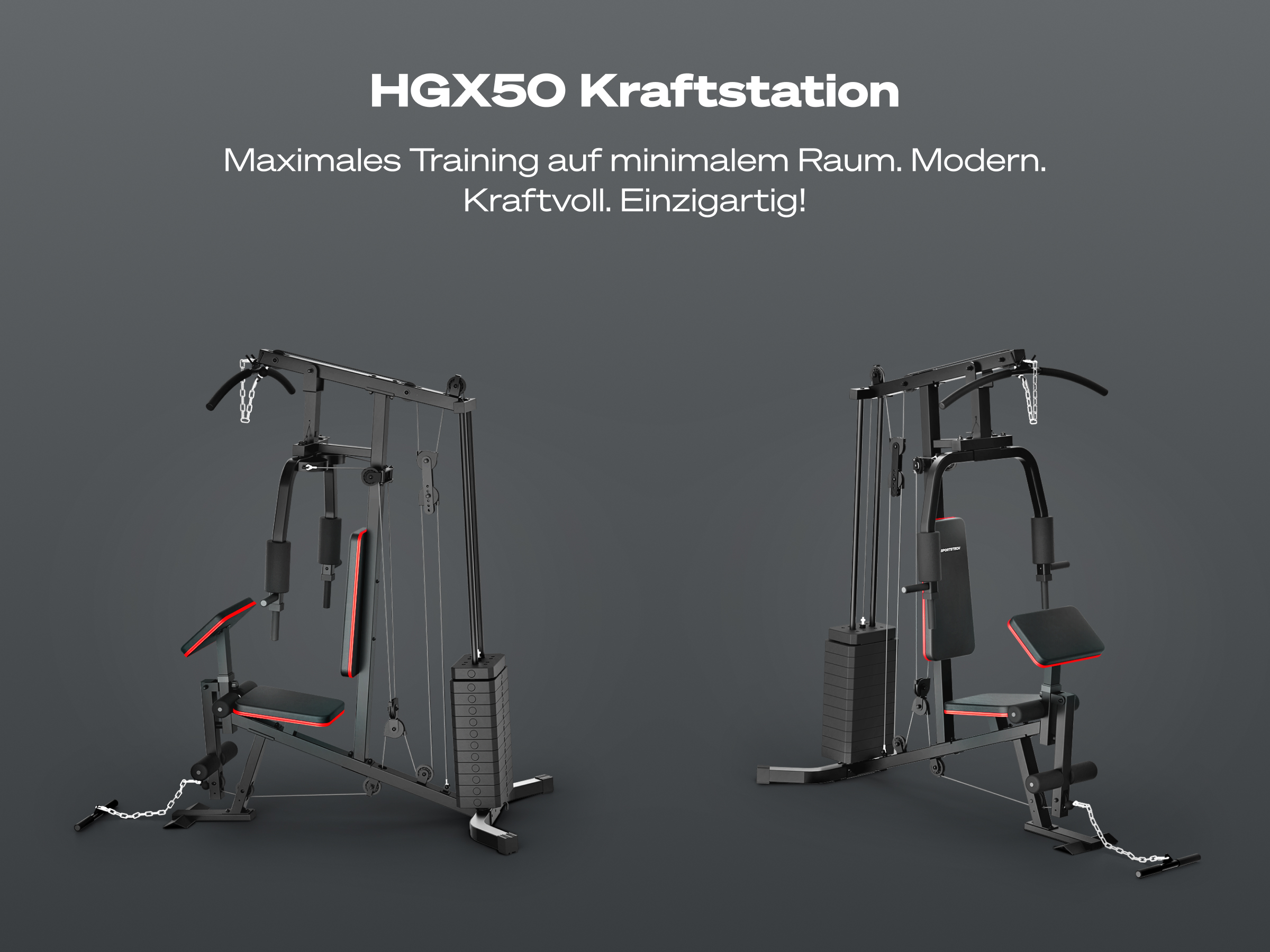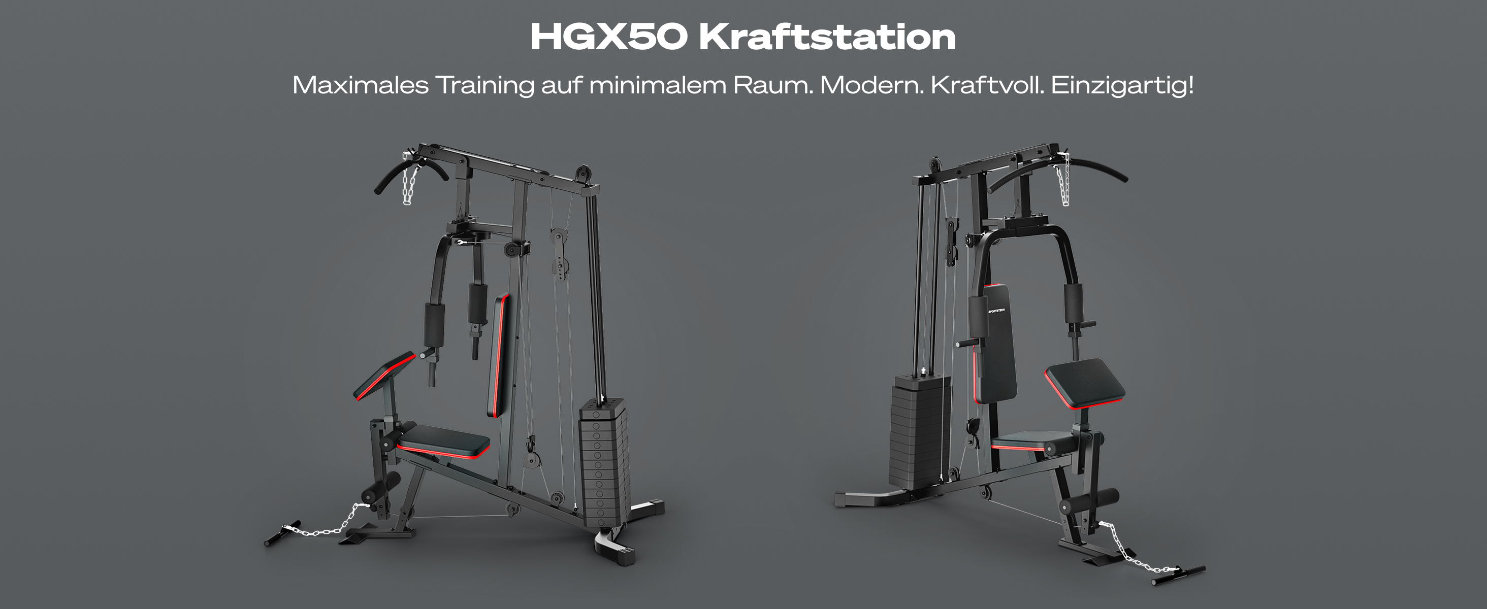 Die HGX50 ist besonders kompakt und benötigt unter 2 m² Stellfläche. Damit ist sie ideal für Home Gyms und kleinere Trainingsräume geeignet.