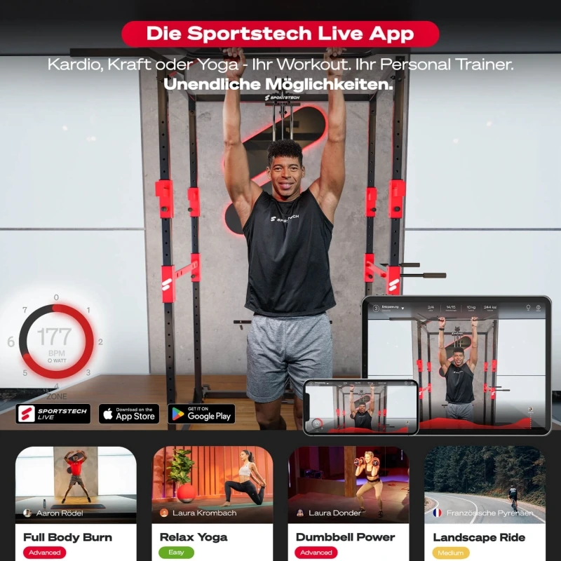 Wer alle Muskelgruppen des Oberkörpers trainieren will, greift normalerweise zu mehreren verschiedenen Geräten, die viel Platz erfordern. Die Dip Station PT300 schafft Abhilfe, denn sie kombiniert 7 Sportgeräte in einem und ist dazu noch hochbelastbar. Das Ziel von SPORTSTECH ist es, möglichst vielen Menschen ein effektives Home Training zu ermöglichen. Daher kannst du dein neues Fitnessgerät für Zuhause leicht in der Höhe verstellen und so nicht nur deiner Körpergröße, sondern auch deinen Trainingsvorlieben anpassen - einfach clever!