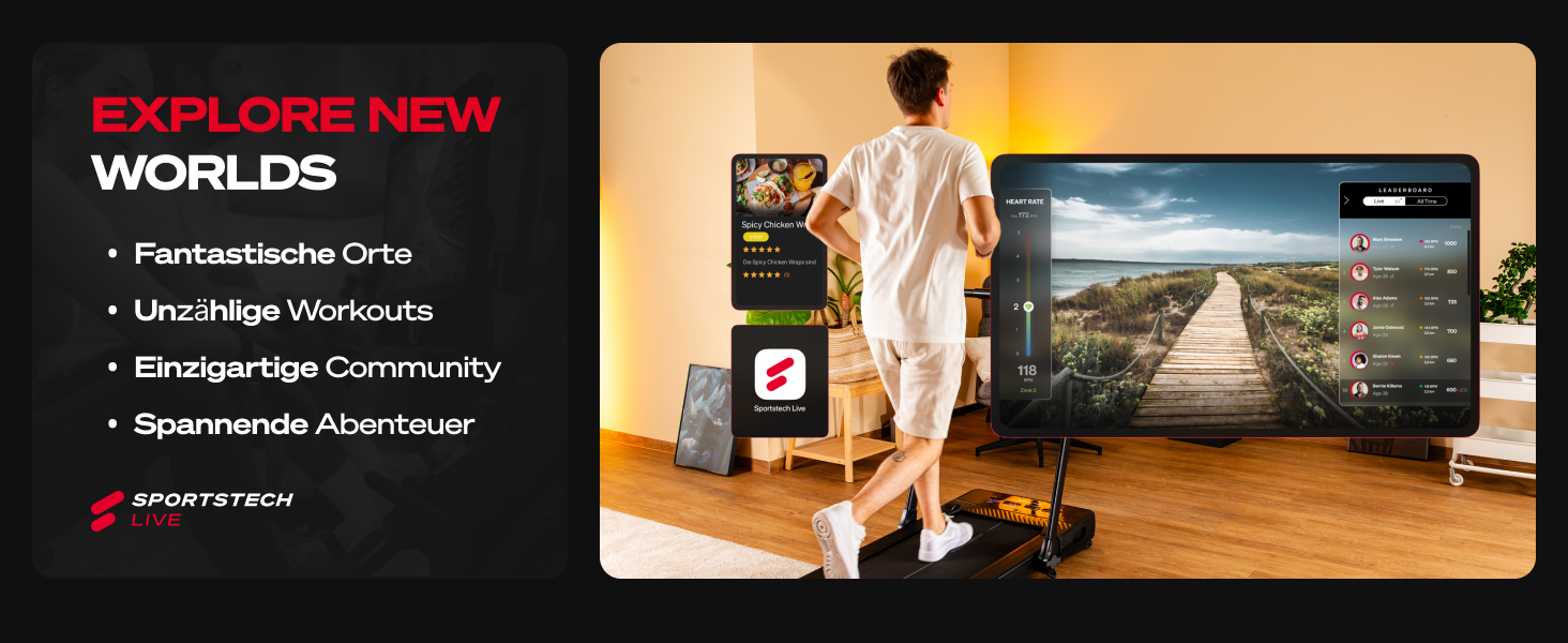 Ja, das Laufband unterstützt die Sportstech Live App, die unter anderem bietet: