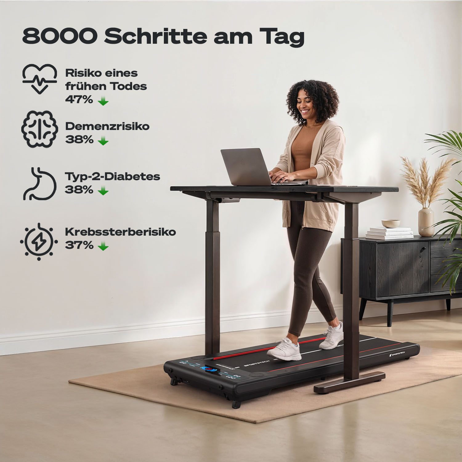 Steigere deine Produktivität, Konzentration und Fitness, indem du körperlich passive Tätigkeiten in kleine Fitnesseinheiten verwandelst. Ob am Schreibtisch im Home Office oder Büro, oder zur Bewegung in deinem Wohnzimmer – das sWalk ist jederzeit einsatzbereit. Während der Videokonferenz mit Kollegen oder beim Hören deines Lieblings-Podcasts bleibst du aktiv und erreichst deine Fitnessziele ganz nebenbei, lange bevor der Tag vorbei ist.