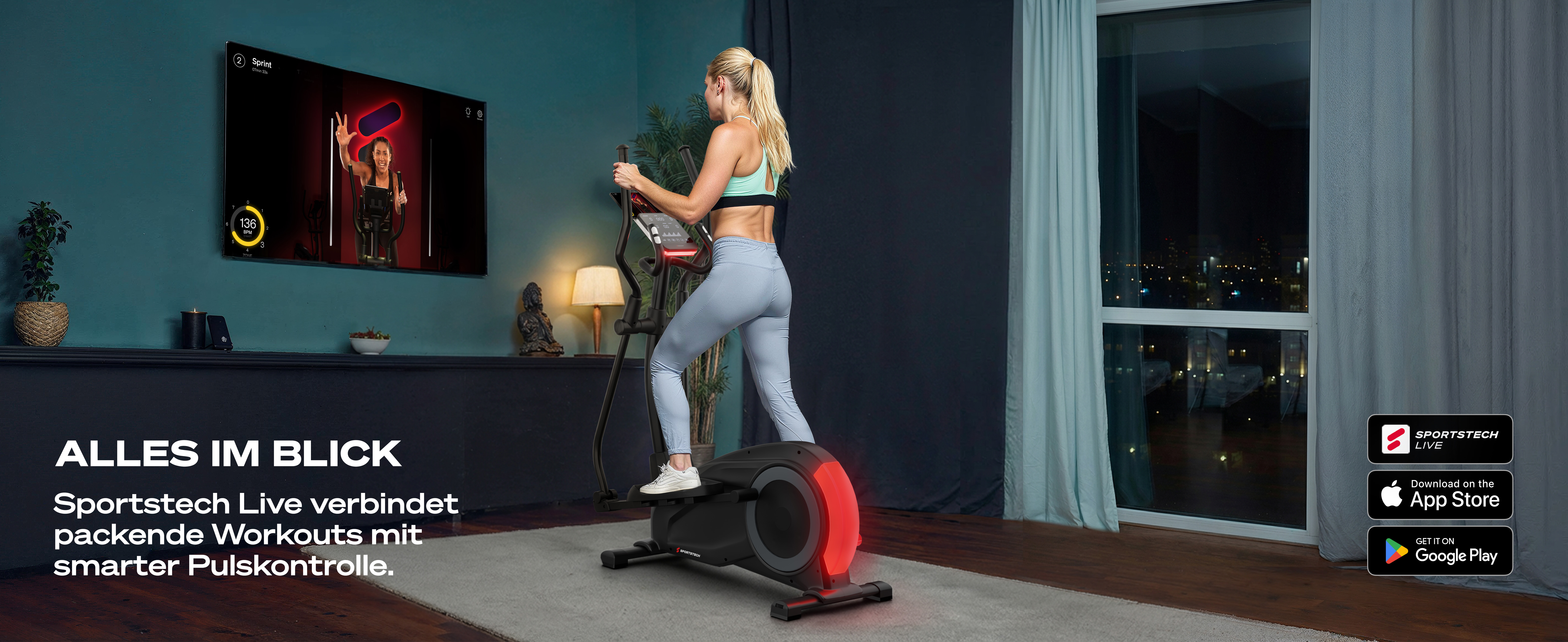 - Mit Sportstech Live App, Polar und Wahoo kompatibel