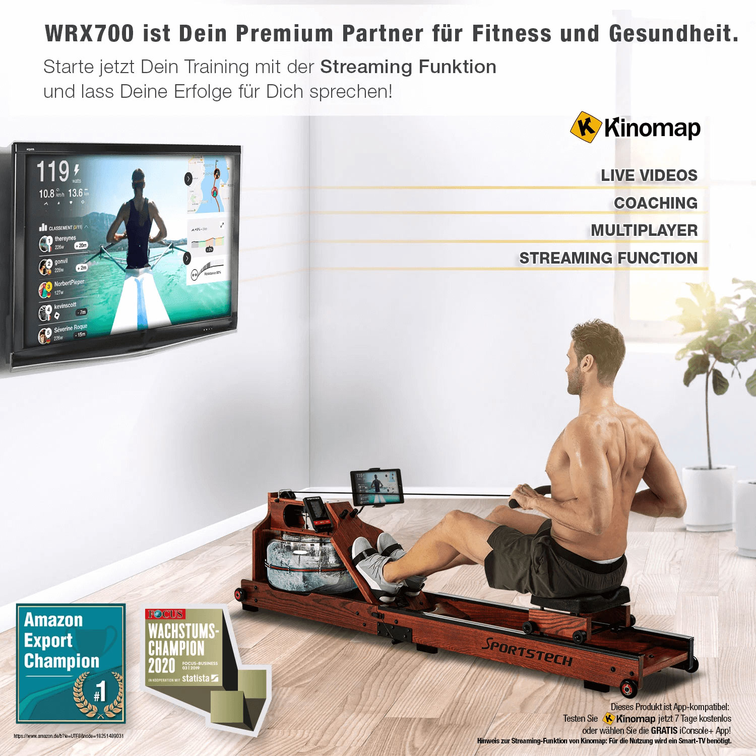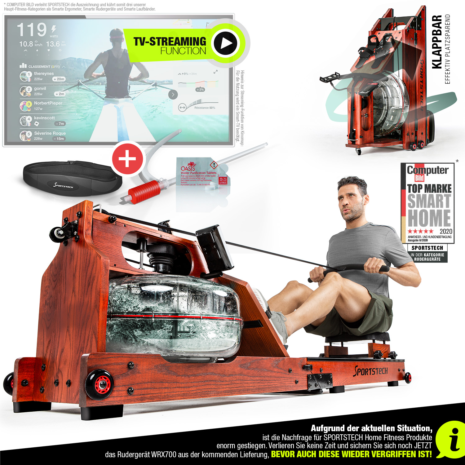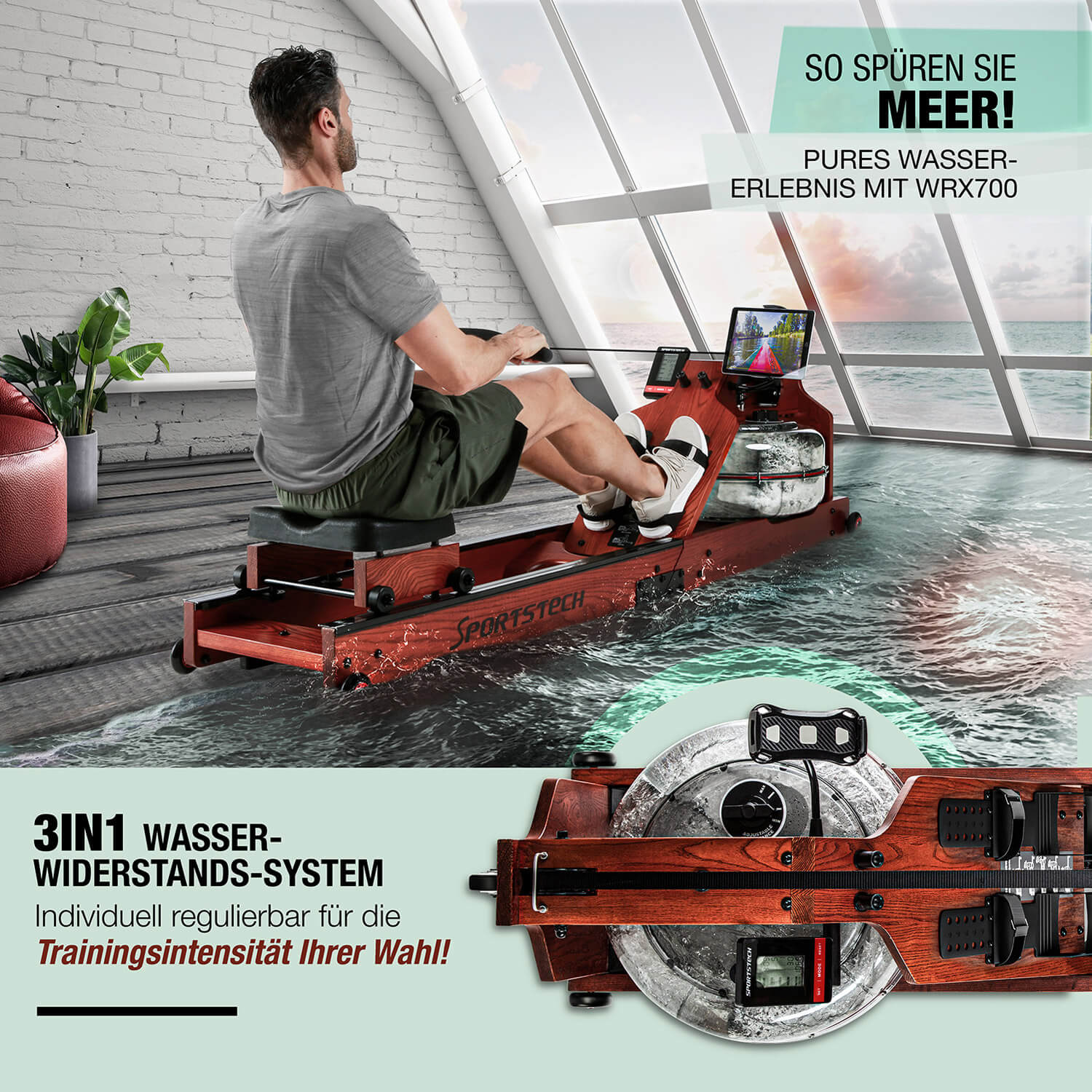 Unsere Rudergeräte mit Wasser stechen durch ihre 14+1 HRC-Programme hervor. Das WRX700 Wasser-Rudergerät punktet zudem mit einer detaillierten LCD-Anzeige. Via Smart-Connect verbindet ihr euer Smart-Device drahtlos mit dem WRX700-Wasser-Rudergerät und behaltet alle Trainingsparameter im Blick.
