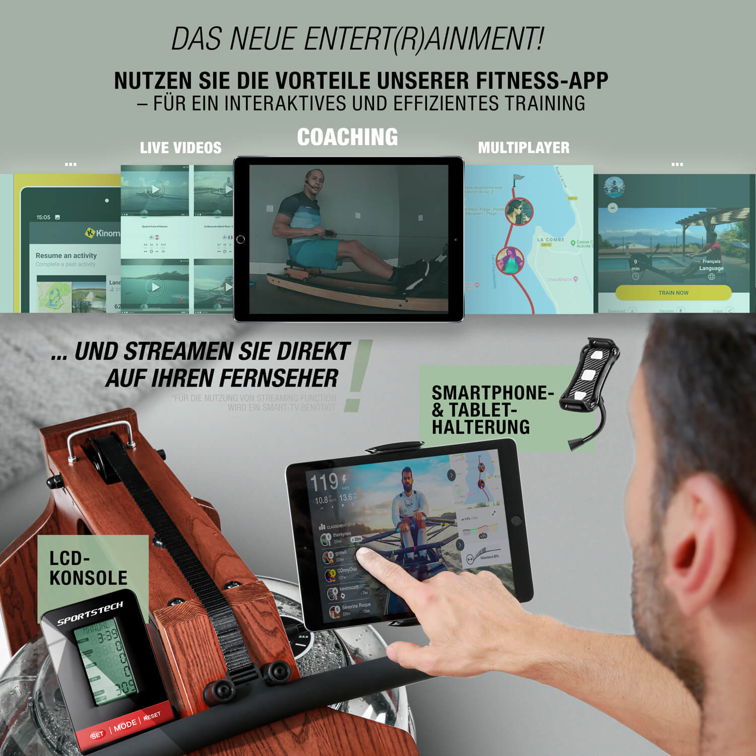 Das aus Eschenholz gefertigte Wasserrudergerät kombiniert schickes Design mit realem Rudergefühl. Verantwortlich dafür ist der gleichmäßige Widerstand des 3in1-Wasserwiderstand-Systems. Dank dem bruchsicheren Wassertank mit Silikondichtung besteht 100% Auslaufschutz. Rudergerät + Wasser, das passt!