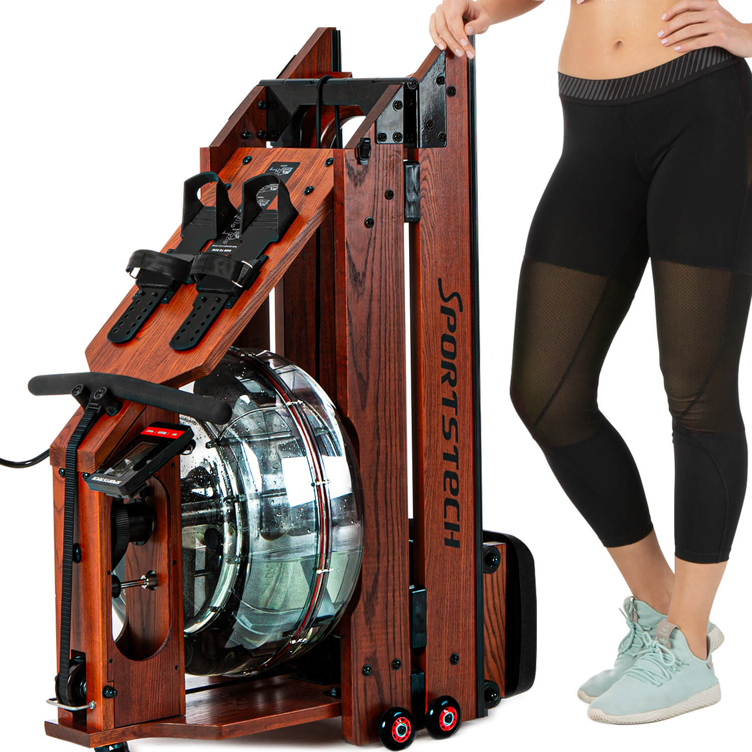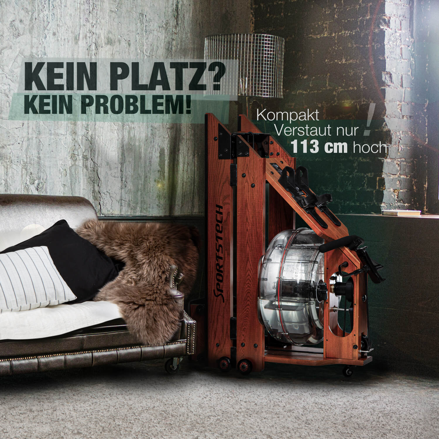 flüsterleise Rudergeräte mit Wasser-Widerstand. Auch der Aufbau der Rudergeräte mit Wasser-Tank ist kinderleicht. In 2 Schritten ist das Wasser-Rudergerät einsatzbereit bzw. wieder verpackt (113cm hoch).