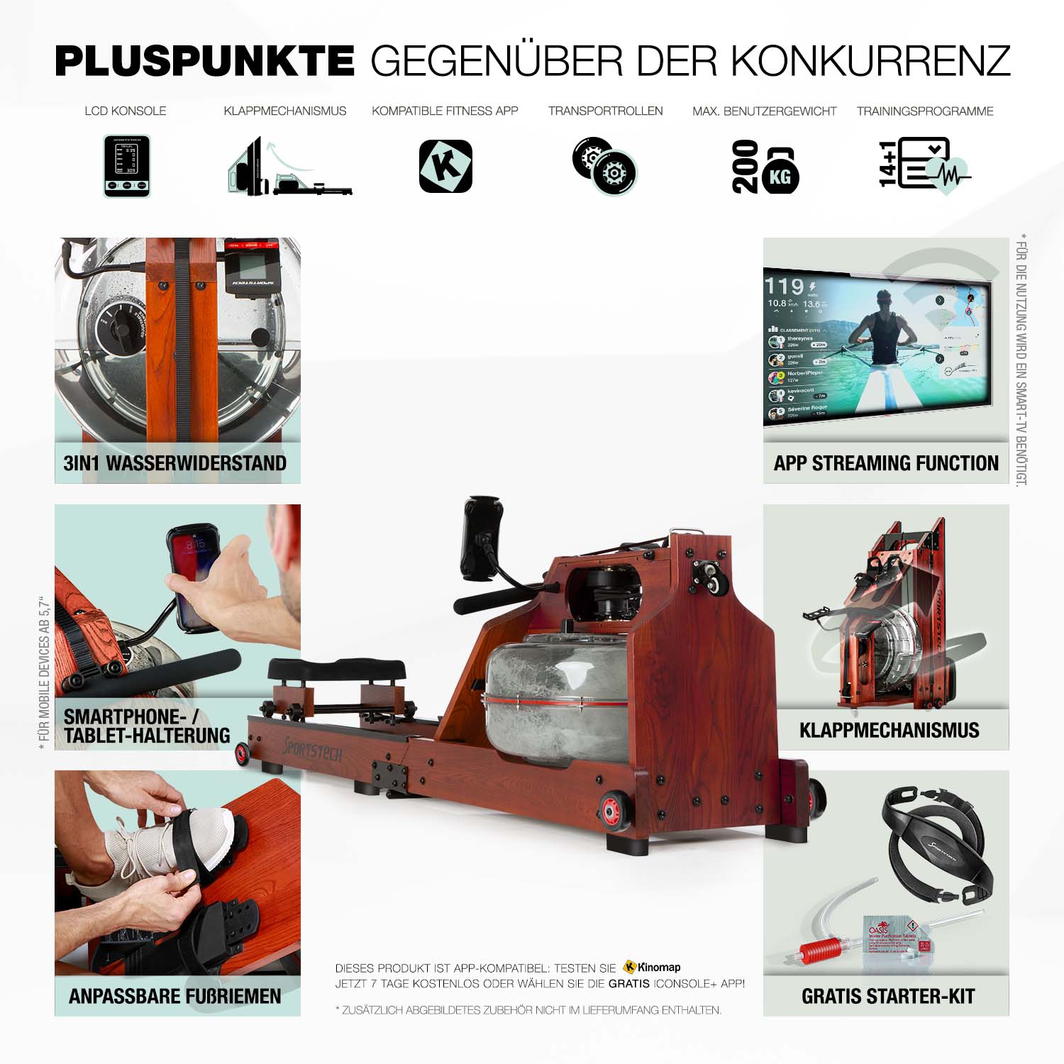- Widerstandssystem 3 in 1 Wasserwiderstandssystem (Füllmenge, indiv. Ruderzug, 2-Kammersystem)