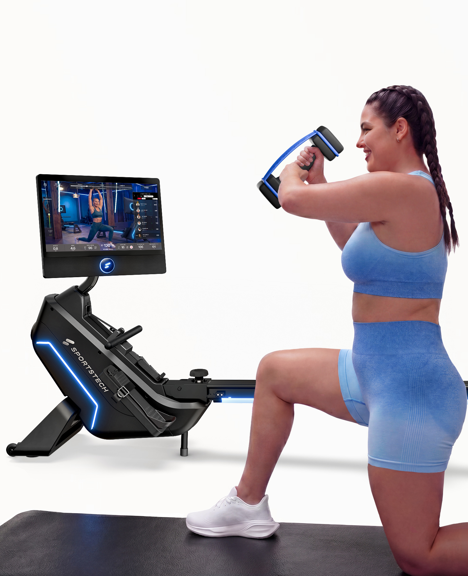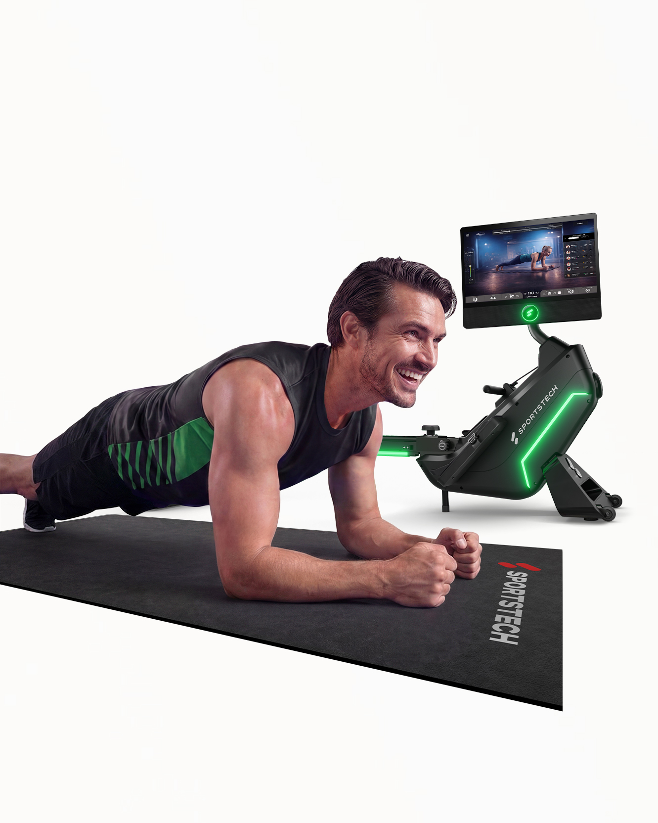 Das sRow bringt dein Training auf ein neues Level – dank integriertem 21,5″ Touch-Display und der vorinstallierten Sportstech Live App. Du hast sofort Zugriff auf hunderte interaktive Kurse, motivierende Landschaftsvideos, persönliche Trainingspläne und Live-Workouts – direkt auf dem Gerät, ganz ohne Zusatzgeräte. In Begleitung mit dem LED Feedbacksystem nach Widerstand oder Puls genießt du Studioqualität zuhause.