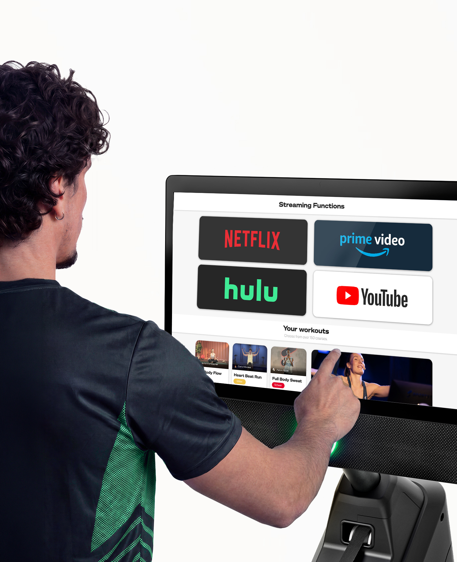- Entertainment & Apps – streame Netflix*, YouTube* und mehr während des Trainings direkt auf dem Gerät.